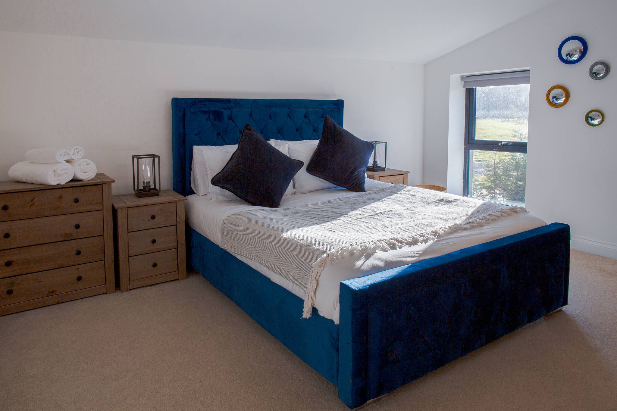 Upstairs are two good sized bedrooms, 1 King and 1 Double offering stunning views over the Apple Orchard behind the barn. Both served by the family bathroom, complete with bath and upright shower.